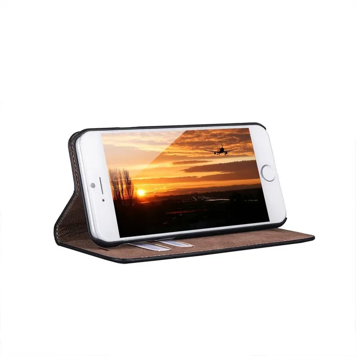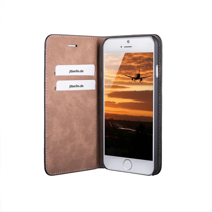 Eine besonders ausgeklügelte Folio-Tasche von JT Berlin - Das BookCase umschließt Ihr Smartphone auf der Rückseite mit einem robusten Hardcover passgenau und verwahrt es so sicher auf.
