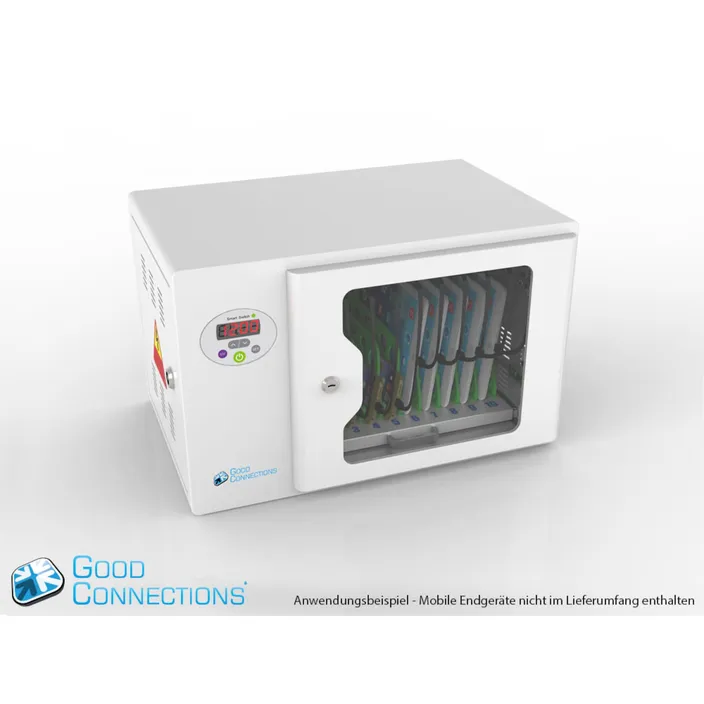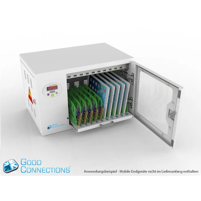 Tablet-Ladestation für bis zu 10 Geräte, UV-Desinfektion, Smart Control, grau, Good Connections
