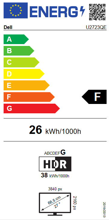 - EnergieeffizienzklasseF auf einer Skala von A (sehr effizient) bis G (weniger effizient)