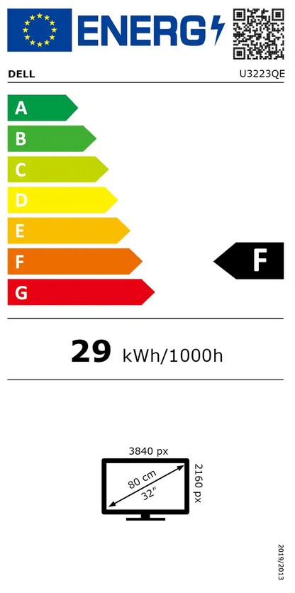 - EnergieeffizienzklasseF auf einer Skala von A (sehr effizient) bis G (weniger effizient)