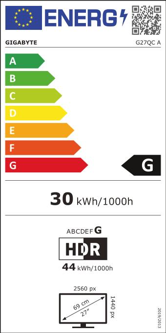 - EnergieeffizienzklasseG auf einer Skala von A (sehr effizient) bis G (weniger effizient)