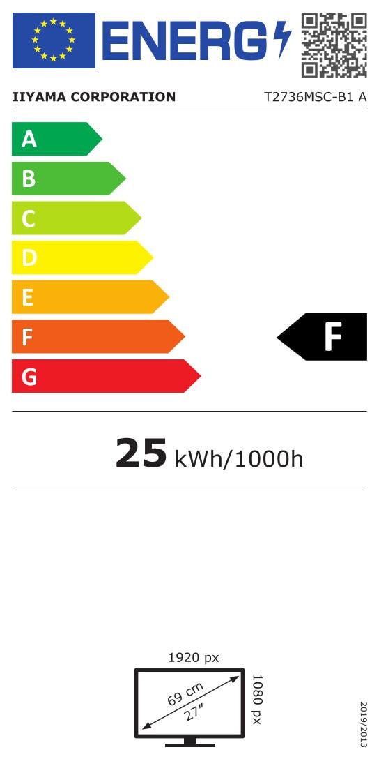 - EnergieeffizienzklasseF auf einer Skala von A (sehr effizient) bis G (weniger effizient)