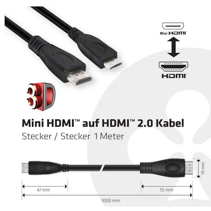 Club 3D Mini HDMI auf HDMI 2.0 Kabel Stecker / Stecker 1,0m Bidirektional CAC-1350