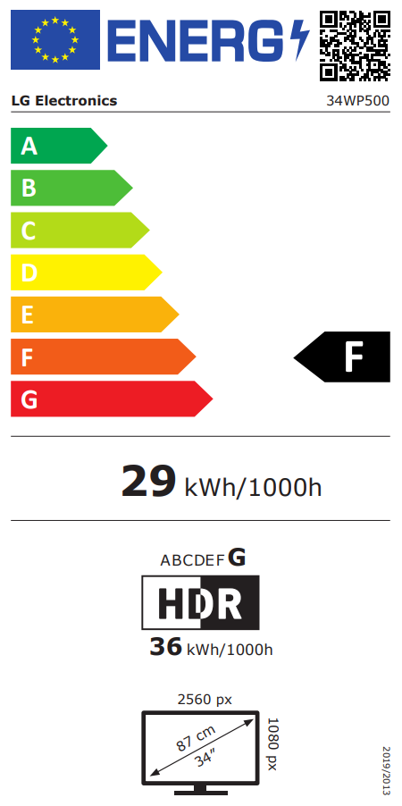 - EnergieeffizienzklasseF auf einer Skala von A (sehr effizient) bis G (weniger effizient)