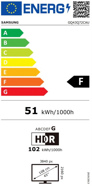 - Energieder jährliche Energiebedarf liegt bei : 51 kWhStandby-Modussichtbare Diagonale: 109 cm / 43 Zoll