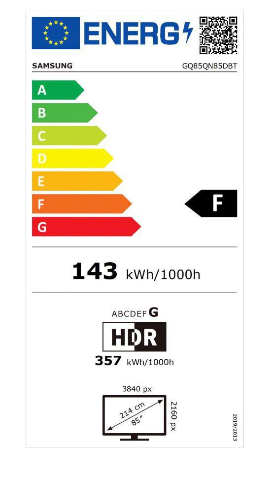 - EnergieDie Leistungsaufnahme im eingeschalteten Zustand liegt bei: 143WStandby-Modussichtbare Diagonale: 214 cm / 85 Zoll