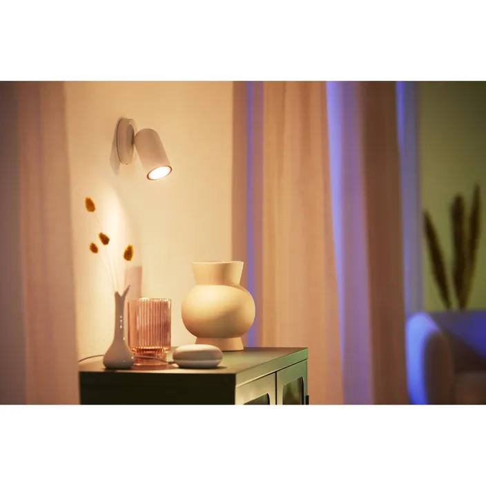 Dieser smarte WiZ GU10 Spot Beam LED-Strahler bringt wirksames Licht in Dein Wohn- und Arbeitsumfeld. Mit verschiedenen Farbtönen oder einem warmweißen bis kaltweißen Licht kannst Du dich besser konzentrieren oder entspannen. Du kannst Routinen zum Ein- und Ausschalten des Lichts für Deine täglichen oder wöchentlichen Aktivitäten einrichten, oder das Licht mit Deinem Smartphone oder Deiner Stimme steuern. Bei Abwesenheit leistet Dir die Steuerung über die WiZ App gute Dienste. WiZ-Lampen verbinden sich ohne zusätzliche Hardware mit Deinem WLAN.