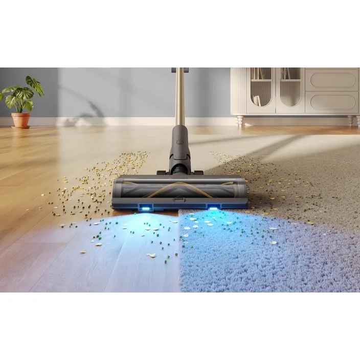 Die Zyklon-Abscheidetechnik sorgt für eine kraftvolle und konstante Saugleistung, indem sie Staub und Schmutz effektiv von der Luft trennt. Der integrierte HEPA-Filter stellt sicher, dass selbst kleinste Partikel, die Allergien auslösen können, zuverlässig zurückgehalten werden, wodurch die Luft während des Saugens gereinigt wird. Die Bürstenwalze des Aufsatzes ist mit innovativer LED-Beleuchtung ausgestattet, die selbst in dunklen Ecken für optimale Sicht sorgt.