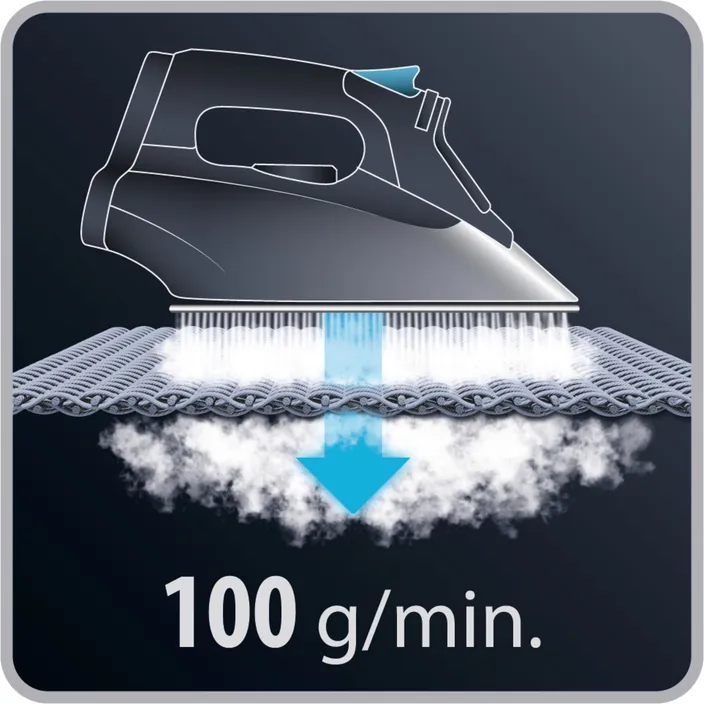 Kraftvolle Dampfleistung: Ein Dampfstoß von bis zu 100 g/Min. wird selbst mit den hartnäckigsten Falten fertig