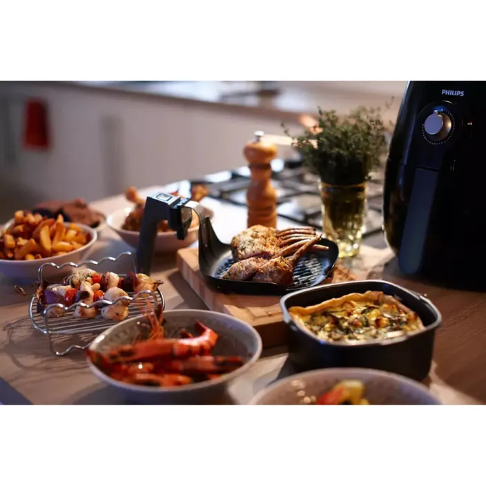 Backzubehör. Mit dem Philips Airfryer L Backset können Sie all Ihre Lieblings-Backrezepte ausprobieren. Die 1,3 l Fassungsvermögen sind ideal für die Zubereitung von Cupcakes, Brownies, kleinen Kuchen und anderen Gerichten. Ausprobieren und genießen!
