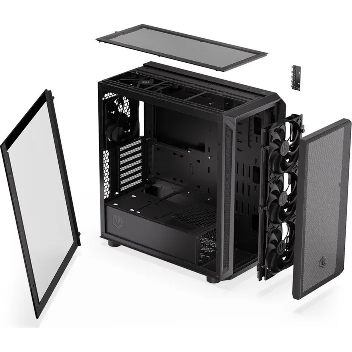 Das ENDORFY ARX 700 Air ist ein geräumiges Tower-Gehäuse und kann alles unterbringen, was man für die Arbeit und mehr braucht. Mit dem ARX 700 Air hat man dank des Seitenteils aus gehärtetem Glas seine Komponenten immer im Blick. Man kann bis zu 6x 2,5"-HDDs und 1x 2,5" / 1x 3,5") einbauen, wobei genügend Platz für ein ATX-Mainboard und eine 410 mm lange Grafikkarte bleibt. Es gibt die Wahl des Aufbaus eines luftgekühlten Systems mit bis zu acht Lüftern oder ein flüssigkeitsgekühltes System mit einem 360 mm Radiator auf der Ober und Vorderseite. Für die arktischen Temperaturen im Innenraum des Gehäuses sorgen 5 Stratus 140mm PWM Lüfter.Motherboard-Formfaktoren: ATX, microATX, ITXMax. Länge der Steckkarten: 410 mmMax. Höhe vom CPU-Luftkühler: 179 mmMax. Länge vom Netzteil: 340 mmPCI-Slots: 7Kühlung: Lüfter (max.): 8Kühlung: Lüfter (vormontiert): 4x Lüfter Stratus 140 PWM (Vorderseite: 3 ; Rückseite: 1)Kompatibilität Radiatoren: Vorderseite: 1× 120, 240, 280, 360 mmKompatibilität Radiatoren: Oberseite: 1× 120, 240, 280, 360 mmKompatibilität Radiatoren: Rückseite: 1× 120, 140 mmStaubschutzfilter: vorne ; oben ; untenI/O-Panel: 1× USB-C ; 2× USB-A ; 1× Kopfhörer (Klinkenstecker 3.5 mm) ; 1× Mikrofon (Klinkenstecker 3.5 mm) ; 1× POWER ; 1× RESET/LED