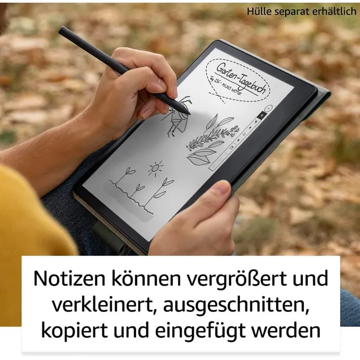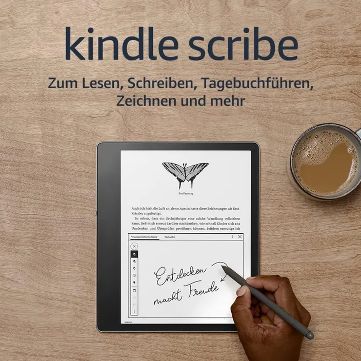 Mit seinem blendfreien 10,2-Zoll-Paperwhite-Display mit 300 ppi eignet sich Kindle Scribe perfekt zum Lesen und Schreiben, auch in direktem Sonnenlicht. Das große Display bietet viel Platz zum Schreiben von Notizen und Tagebucheinträgen und bietet durch die Möglichkeit, Schriftgröße und Seitenränder anzupassen, immer ein bequemes Leseerlebnis. Schreiben auf Kindle Scribe ist so natürlich wie auf Papier. Die Art, wie der Stift in der Hand liegt und auch die Schreibgeräusche sind gemeinsam mit der Oberfläche von Kindle Scribe darauf abgestimmt, ein ideales Lese- und Schreiberlebnis zu gewährleisten.
