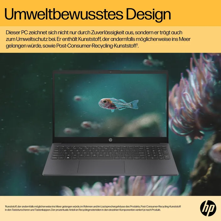 Der HP 15,6"-Laptop-PC verfügt über zahlreiche Funktionen, die Ihre Produktivität steigern und Ihren Geldbeutel – und den Planeten – schonen. Dieses leistungsstarke HP Notebook wurde aus recycelten Materialien hergestellt und verfügt über einen AMD-Prozessor[1], ausreichend Speicherplatz und eine faszinierende Grafik. Das Verhältnis von Bildschirm zu Gehäuse von 85 %[2] und der 3-seitige schmale Rahmen bieten viel Platz, um mehr von dem zu tun und zu sehen, was wichtig ist.