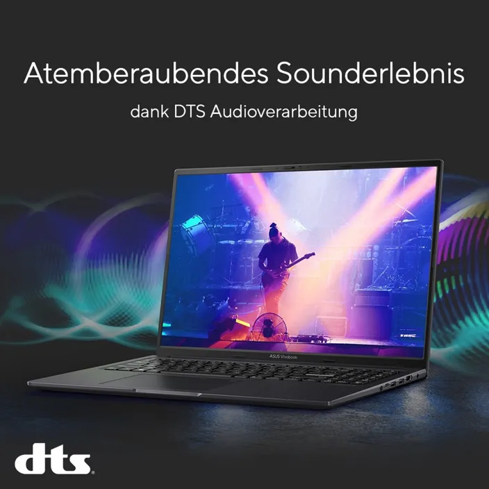 Mit dem Vivobook 16X OLED tust Du auch Deinen Ohren etwas Gutes. Mit der DTS-Technologie genießt Du den besten Sound bei Deinen Lieblingssongs, -serien und -filmen. Die DTS-Audioverarbeitung holt selbst aus kleinen Lautsprechern das Beste heraus, sodass Du einen verstärkten und verzerrungsfreien Sound mit satten Bässen genießen kannst. Und dank ASUS AI-Noise-Cancelling sind Deine eigenen Aufnahmen so klar wie nie zuvor. Störende Hintergrundgeräusche gehören mit dem Vivobook 16X OLED der Vergangenheit an. Und das alles bekommst Du in einem robusten und stylischen Metalldesign, das nach dem Militärstandard MIL-STD 810H getestet und ausgezeichnet wurde.