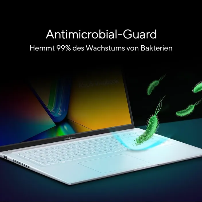 Der Sicherheitsaspekt wird beim Vivobook 16X OLED groß geschrieben. Zum einen wird Deine Privatsphäre durch eine Schiebeabdeckung über der HD Webcam geschützt. Mit dem optionalen Fingerabdrucksensor auf dem Touchpad kannst Du das Vivobook 16X OLED mit nur einer Berührung entsperren, ohne dass jemand anderer Zugriff darauf hat. Zusätzlich bietet der Antimicrobial-Guard Schutz vor Bakterien. Tests mit Kolibakterien ergaben einen Sicherheitsfaktor von 99 Prozent und einen Schutz von bis zu drei Jahren. So bist Du auch im Alltag außerhalb der eigenen vier Wände sicher und geschützt.