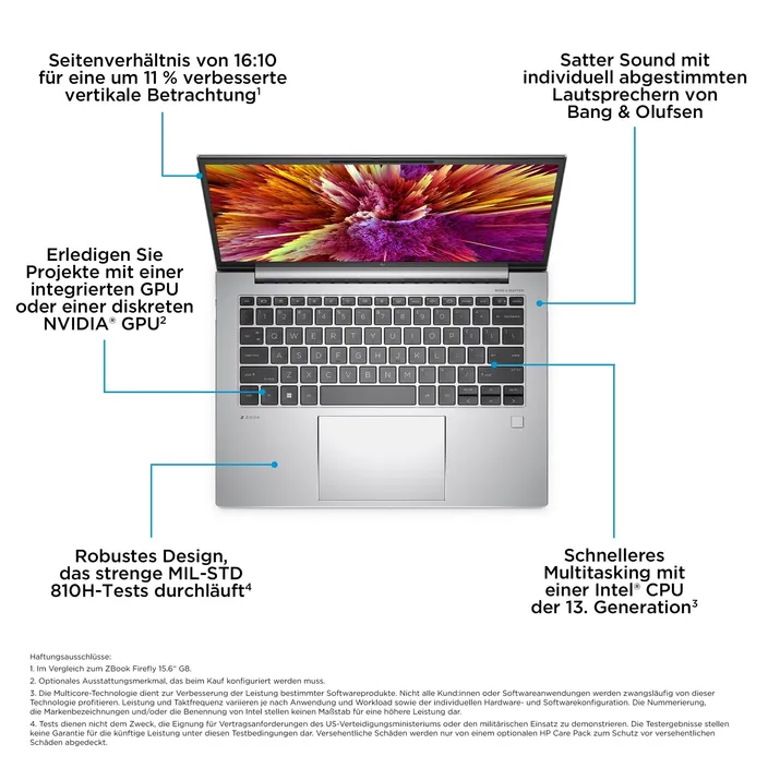 [9] MIL-STD-Tests sind nicht dazu bestimmt, die Eignung im Hinblick auf die Anforderungen des US-Verteidigungsministeriums oder für militärische Zwecke nachzuweisen. Die Testergebnisse stellen keine Garantie für die künftige Leistung unter diesen Testbedingungen dar. Für versehentliche Schäden und für Schäden, die unter diesen Testbedingungen entstanden sind, ist das optionale HP Care Pack mit Schutz vor versehentlichen Schäden erforderlich.