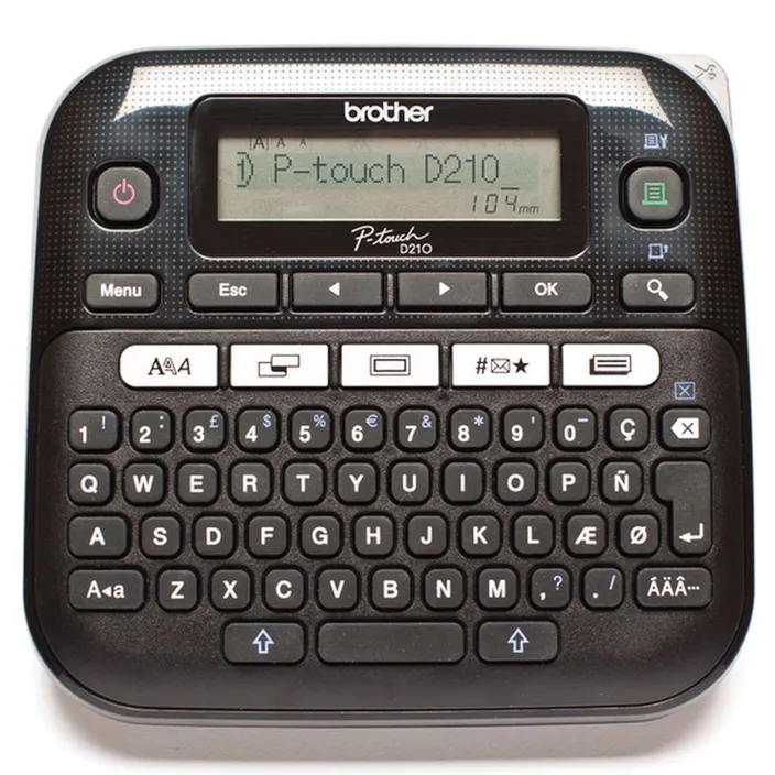 Das P-touch D210 ist immer schnell zur Hand, wenn es darum geht, professionelle, langlebige Etiketten zu erstellen. Das Gerät bedruckt TZe-Schriftbänder in 3,5 - 12 mm Breite und das mit bis zu 20 mm/Sekunde Druckgeschwindigkeit. Die Texteingabe erfolgt bequem über die QWERTZ-Tastatur.