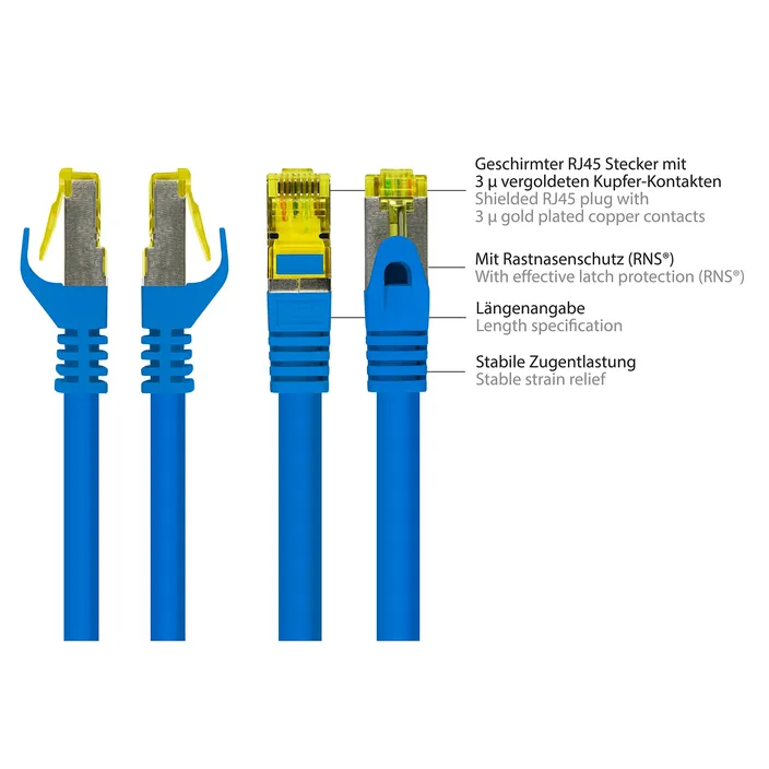 - Patchkabel mit Cat. 7 Rohkabel und Rastnasenschutz