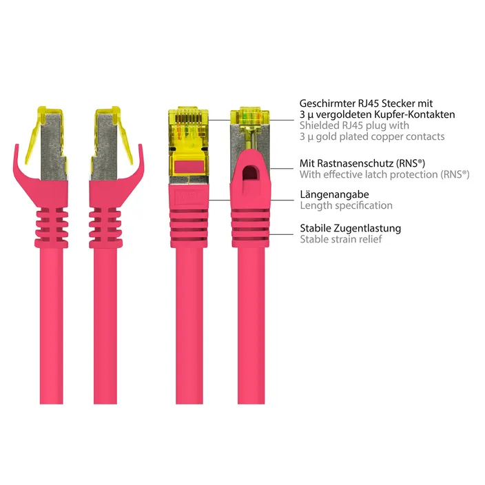 - Patchkabel mit Cat. 7 Rohkabel und Rastnasenschutz