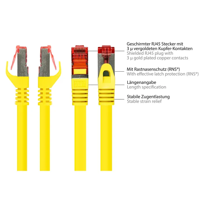 Patchkabel von Good Connections® mit effektivem Rastnasenschutz (RNS). Verhindert das Wegknicken der Rastnase auf dem Patchkabelstecker. So gehören abgebrochene Rastnasen der Vergangenheit an!