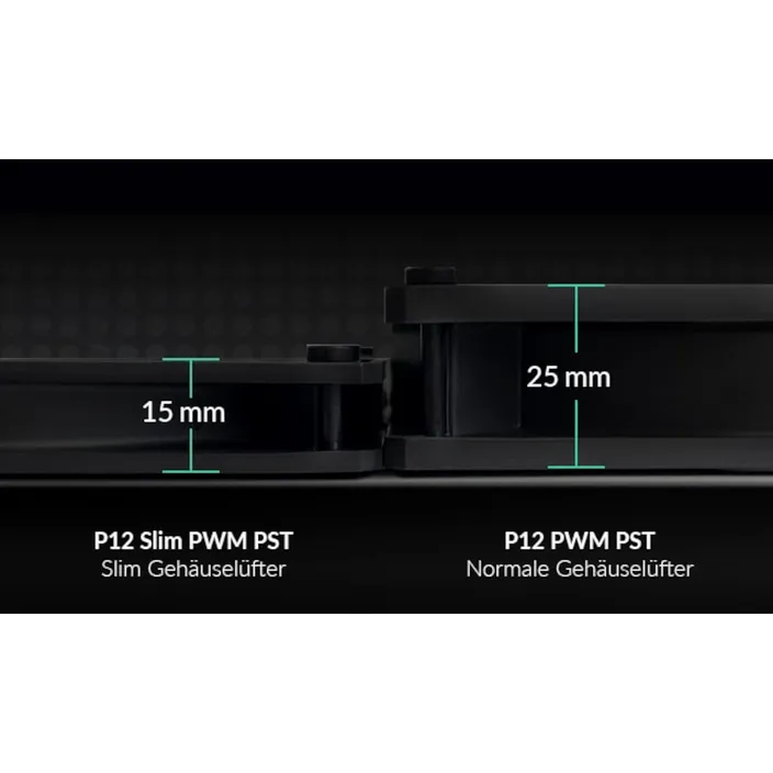 Im Gegensatz zu normalen Gehäuselüftern, die 25 mm Dick sind, besitzt der P14 Slim PWM PST eine Einbautiefe von nur 15 mm. Dies macht ihn zu einem prädestinierten Lüfter für Small Formfaktor Builds.