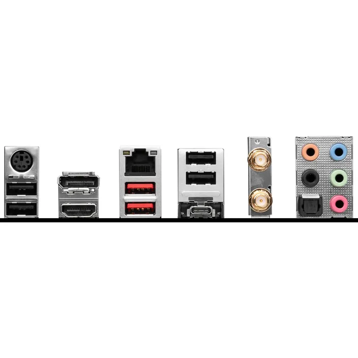 • 1x DisplayPort, 1x HDMI, 6x USB 3.2, 8x USB 2.0, 2xUSB-C, 1x Gigabit-L