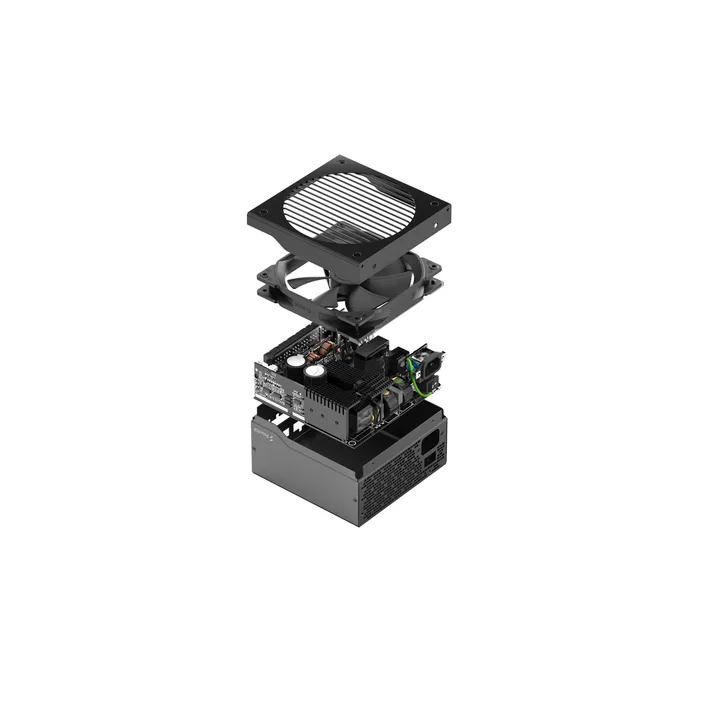 Ausgestattet mit einem leistungsstarken Fractal Design Dynamic GP-14 140 mm Lüfter, der mit einer geringen Mindestdrehzahl und echtem FDB-Lager speziell für den Einsatz in Netzteilen optimiert wurde