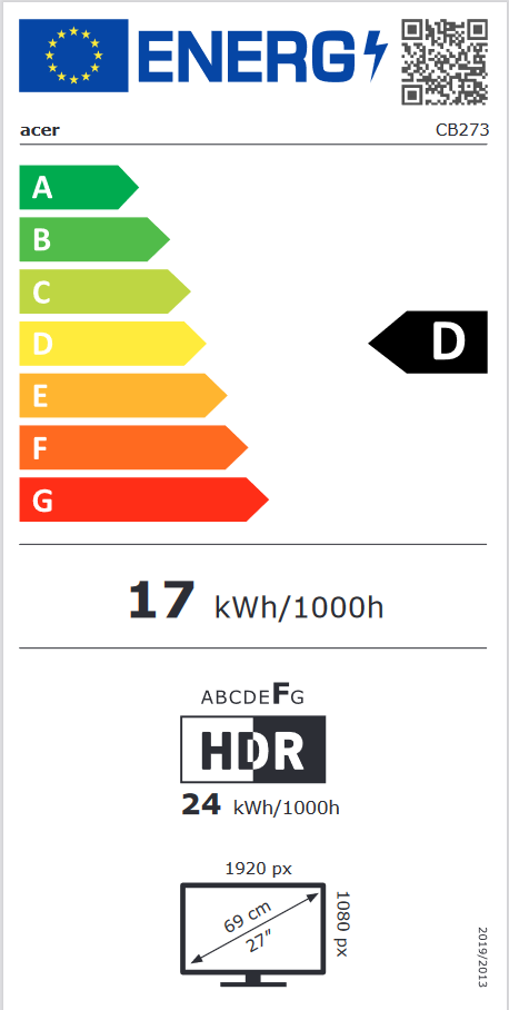 - EnergieeffizienzklasseD auf einer Skala von A (sehr effizient) bis G (weniger effizient)