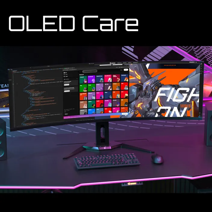 AORUS versteht Ihre Sorge bezüglich des OLED-Monitors. Wir verwenden einen KI-basierten Algorithmus im Hintergrund, um das Risiko von Einbrennen automatisch zu minimieren und setzen ihn für eine Reihe von OLED-Schutztechnologien im AORUS CO49DQ ein.