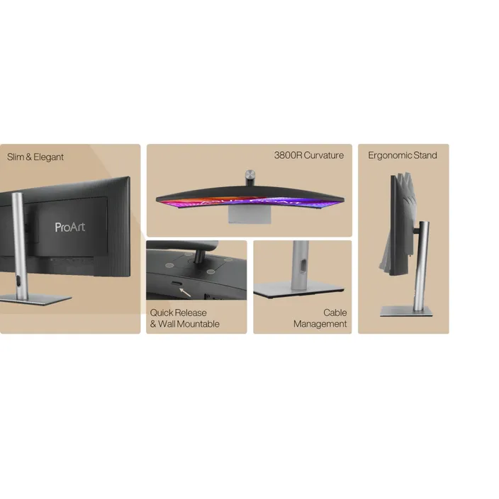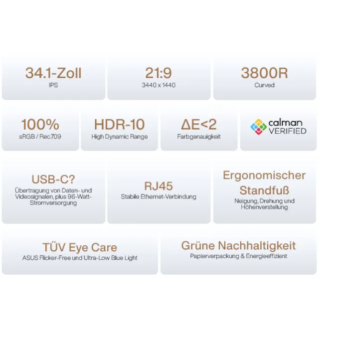 ASUS ProArt Display PA34VCNV Curved Professional Monitor - 34,1 Zoll, IPS, 21:9 3440 x 1440, 3800R Krümmung, 100% sRGB / Rec.709, Farbgenauigkeit ΔE < 2, Calman Verified, USB-C Docking PD 96W, RJ45, Ergonomischer Standfuß, Grüne Nachhaltigkeit