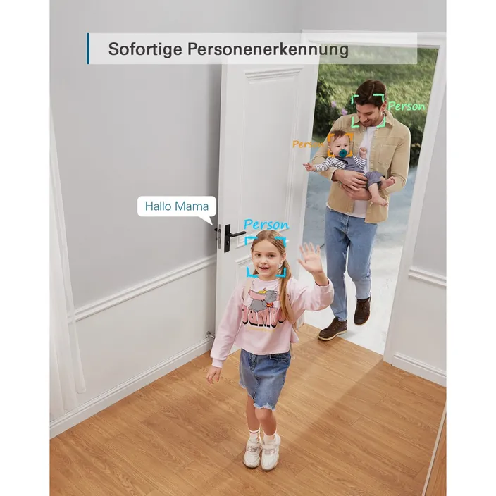 Dank integrierter Personenerkennung werden Sie zuverlässig benachrichtigt, sobald der Geräuschpegel steigt und Ihre Aufmerksamkeit gebraucht wird.