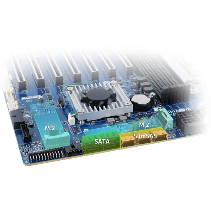 4 x SATA III 6Gb/s ports2 x M.2 slot for storage (PCIe Gen4 x4 or SATA III 6Gb/s)3 x SlimSAS ports (PCIe Gen4 x4 or 4x SATA III 6Gb/s each)