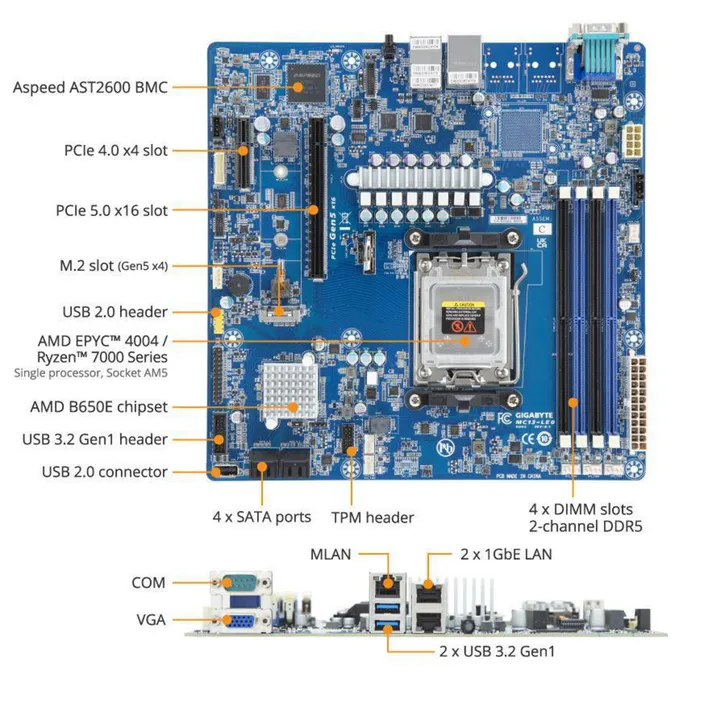 Gigabyte MC13-LE0 mATX Mainboard Workstation EPYC 4004 Sockel AM5