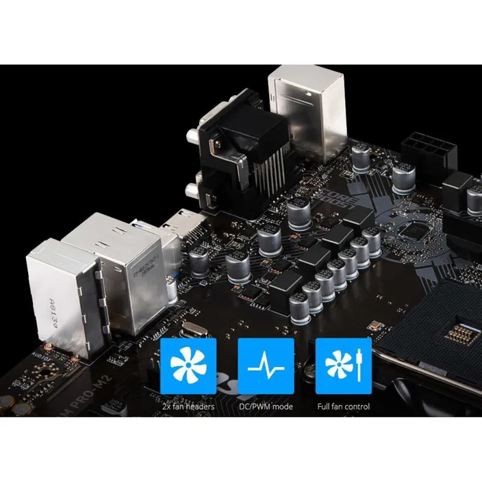 - AnschlüsseInterne Anschlüsse:1x 24-pin ATX main power connector1x 4-pin ATX 12V power connector4x SATA 6Gb/s connectors2x USB 2.0 connectors (supports additional 4 USB 2.0 ports)1x USB 3.2 Gen1 connector (supports additional 2 USB 3.2 Gen1 ports)1x 4-pin CPU fan connector1x 4-pin system fan connector1x Front panel audio connector2x Front panel connectors1x TPM module connector1x Chassis Intrusion connector1x Serial port connector1x Clear CMOS jumperExterne Anschlüsse:1 x PS/2 keyboard/ mouse combo port4 x USB 2.0 Type-A ports1 x DVI port1 x HDMI™ port1x VGA port4 x USB 3.2 Gen1 Type-A ports1 x LAN (RJ45) port3 x OFC audio jacks