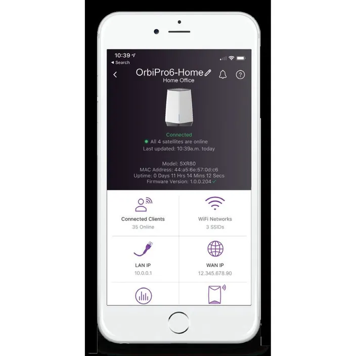 Orbi Pro WiFi 6 ist vollständig kompatibel mit älteren WiFi 5-Geräten (802.11 AC). Jeder Router und Satellit kann im Vergleich zu einem ähnlichen WiFi-Produkt in früheren Generationen viermal mehr Geräte verbinden. Orbi Pro WiFi 6 wird mit einer marktführenden 5-Jahres-Garantie geliefert.