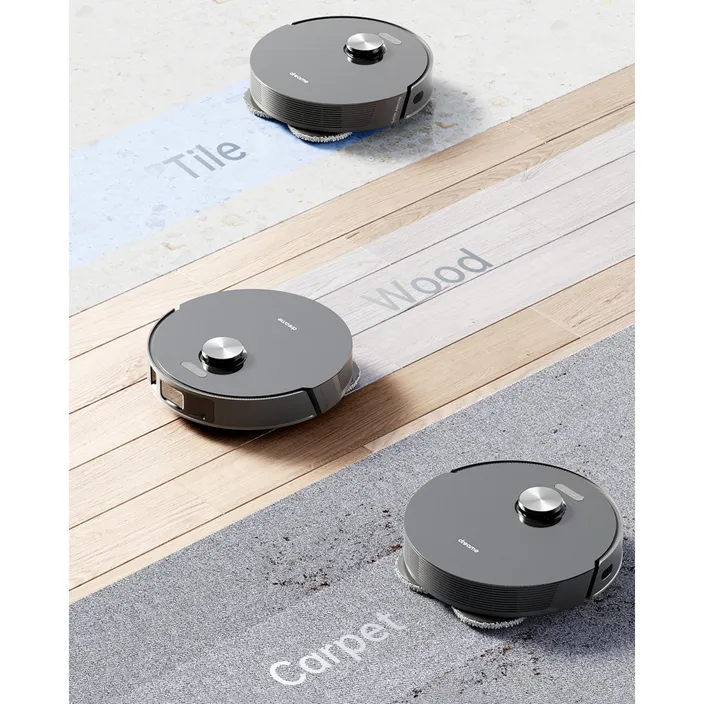 Die hohe Saugkraft von 5.300 Pa und die beiden fortschrittlichen drehbaren Wischmopps ermöglichen eine vielseitige automatische Reinigung sowohl von Teppich- als auch Hartböden.