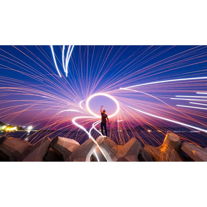 Die HERO11 Black verfügt über drei neue Zeitraffermodi, mit denen du nach Einbruch der Dunkelheit kreativ werden kannst. Der Modus „Startrails“ verwendet die Erdrotation und Sterne für Aufnahmen mit wunderschönen Lichtspuren am Nachthimmel. Mit „Lichtmalerei“ kannst du brillante Pinselstricheffekte mit sich bewegenden Lichtern erzeugen. „Auto-Lichtspuren“ zeichnet mit nächtlichem Verkehr beeindruckende Lichtspuren auf.