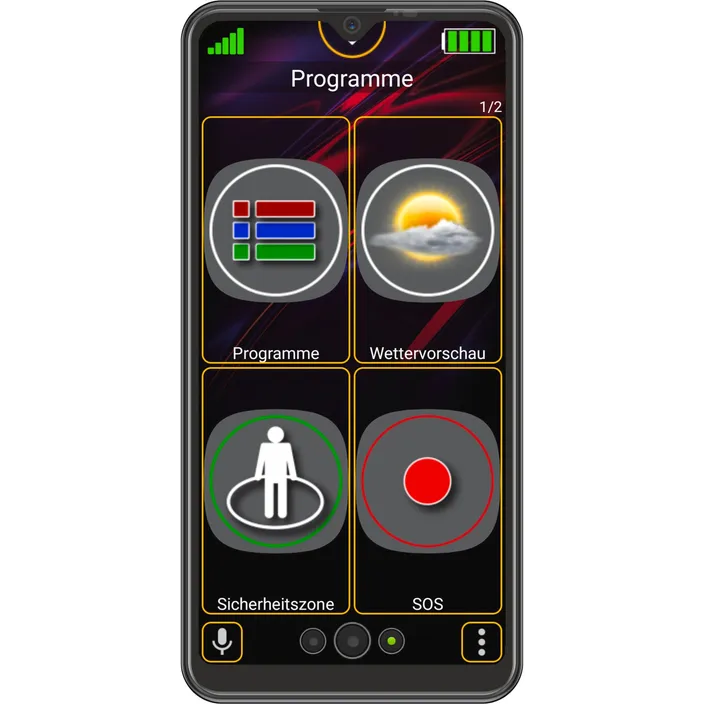 Eine SOS Notruffunktion (frei programmierbar) mit der Möglichkeit einer zuschaltbaren Standorterkennung (GPS) oder einer SOS Sicherheitszone (GPS) sorgt für Ihre Sicherheit.