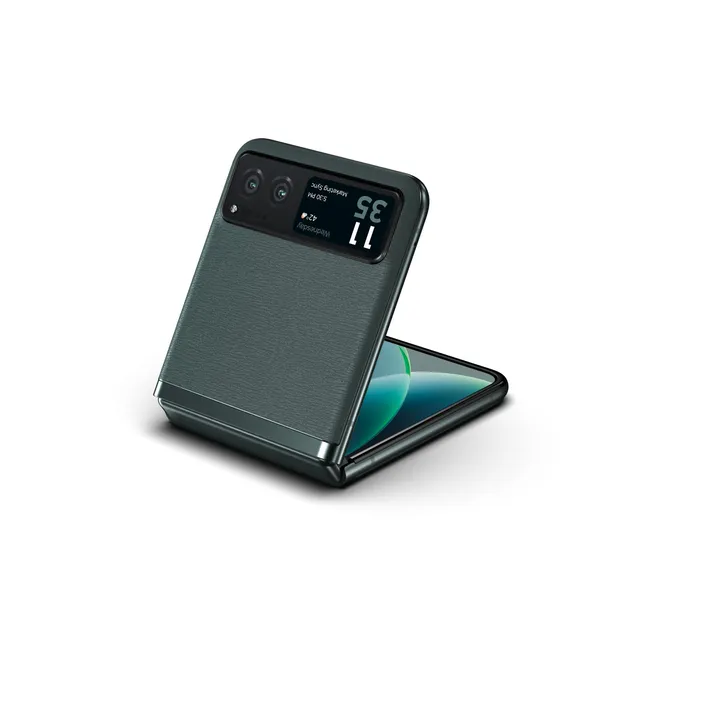 Zusammengeklappt ist das superstylishe und ultrakompakte motorola razr40 nur halb so groß und passt in jede Tasche. Dank des hochpräzisen Designs schließen die beiden Hälften perfekt bündig ab. Mach mit dem Außendisplay alles, was du willst – von einem Blick auf deine Benachrichtigungen bis hin zu wunderschönen Selfies. Klapp es auf und erlebe deine Lieblingsserien und -filme auf dem ultraflüssigen Display in voller Größe. Mit Gorilla Glass® und einem Finish aus veganem Leder in vielen coolen Trendfarben ist das motorola razr40 ein echter Blickfang.