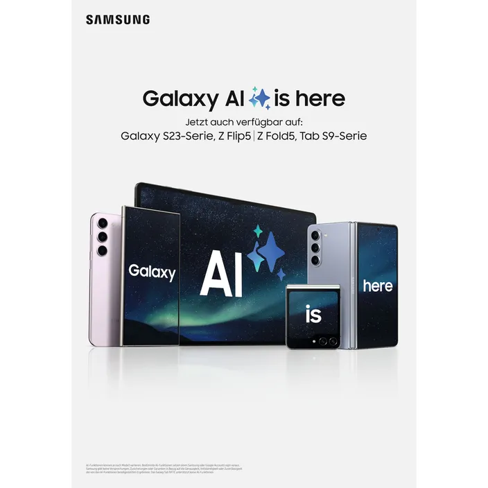 Galaxy AI is here!Jetzt auch verfügbar auf Modellen der Galaxy S23-Serie inkl. S23 FE, den Galaxy Z-Modellen Fold5 und Flip5 sowie der Galaxy Tab S9-Serie
