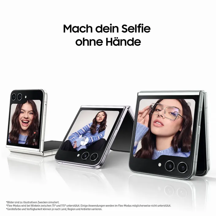 Lust auf ein paar neue coole Posen? Mit dem Galaxy Z Flip5 klappen deine Fotos und Selfies wie von selbst. Nutze die FlexCam 2, um alle möglichen Winkel und ausgefallene Perspektiven auszuprobieren. Deine Hände bleiben dabei frei, so dass du dich mit vollem Körpereinsatz in Szene setzen kannst. Bildschöne Selfies ohne Aufklappen? Mit der Quick Shot-Funktion kannst du auch über das Frontdisplay tolle Selfies in Hauptkamera-Qualität machen.