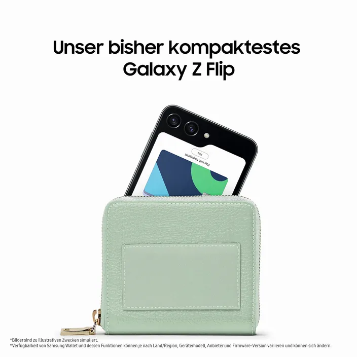 Mach das Galaxy Z Flip5 zu deinem persönlichen It-Piece. Auf dem personalisierbaren Frontdisplay kannst du dich richtig austoben und kreativ werden. Entscheide dich für eines der vorgegebenen Designs oder richte den Screen nach deinen Vorstellungen mit deinen eigenen Fotos oder Hintergründen ein. Sorge auch ruhig mal für Abwechslung und passe den Screen spontan an deine Stimmung oder dein Outfit an. Dein Flip-Styling kannst du mit tollen Covern komplett machen. 4