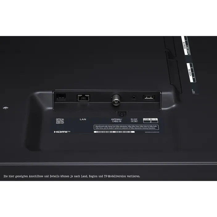 4x HDMI (4K 120Hz, eARC, VRR, ALLM, QMS (2 Ports))2x USB 2.01x LAN (Ethernet)1x Optischer Digitalausgang (S/PDIF, Lichtwellenleiter)1x CI-SlotWiFi 5 (802.11ac)eARC (HDMI 3)