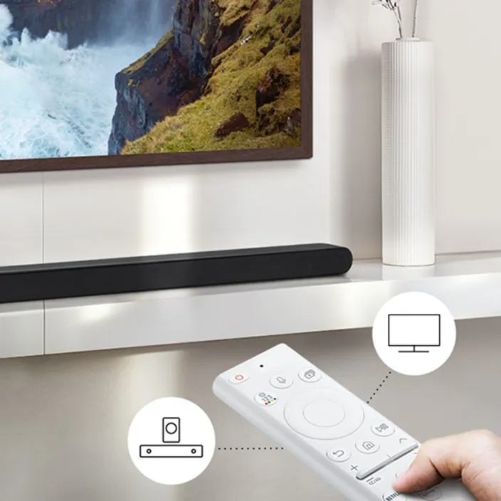 Du brauchst nur noch eine Fernbedienung. Wichtige Funktionen, wie z.B. das An- und Abschalten, die Lautstärke und auch die Soundeffekte können einfach und intuitiv mit der Samsung One Remote Control gesteuert werden.
