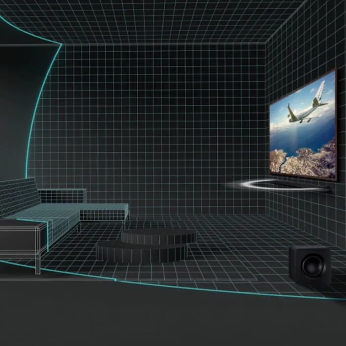 Die SpaceFit-Sound-Technologie in der Soundbar scannt täglich automatisch seine Umgebung, ganz unabhängig von deinem TV Modell. Dabei erkennt die Soundbar die Form, Größe und sogar die Einrichtung deines Zimmers, um den Klang optimal auf deinen individuellen Raum zu kalibrieren und anzupassen.