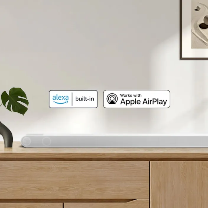 Steuere deine Musik, lass dich informieren und plane deinen Tag – einfach mit deiner Stimme. Mit Alexa kannst du deine Soundbar steuern oder per Sprachsuche einfach Strophen deines Liedes singen, um einen Song zu finden. Egal in welcher Stimmung du bist, mit der Samsung Soundbar kannst du den passenden Song finden. Oder streame Musik direkt von einem kompatiblen Mobilgerät. Wenn du ein Apple-Gerät hast, tippe einfach auf das AirPlay-Icon.
